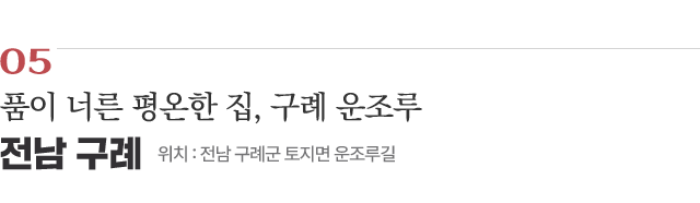 ‘구름 속의 새처럼 숨어 사는 집’이란 뜻을 담은 운조루(雲鳥樓, 국가민속문화재)는 너그럽고 포근한 고택이다. 1776년(영조 52) 류이주가 낙안군수를 지낼 때 지은 집이다. 250년 가까이 잘 보존된 외관은 물론, 고택에 스민 정신이 면면히 전해온다. 노블레스 오블리주를 실천한 류씨 집안은 타인능해(他人能解)라고 새긴 뒤주에 쌀을 채워 가난하고 어려운 이웃이 가져갈 수 있게 했다.