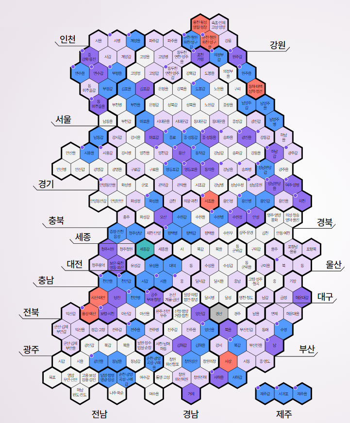 ▶ 지역구는 선거구마다 1위만 당선되는 소선거구제를 채택하고 있다.