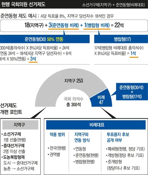 비례대표 의석을 지역구 선거 결과와 연동해 배분하는 제도로,
