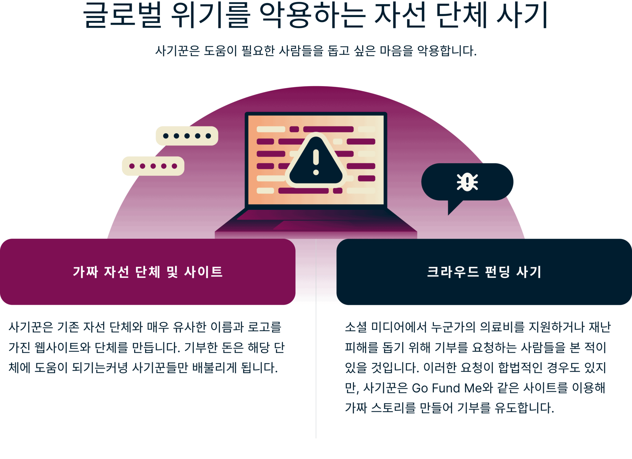 자연재해부터 인도주의적 긴급 상황에 이르기까지 글로벌 위기는 돕고자 하는 강력한 충동을 불러일으킵니다. 하지만 사기꾼들은 이러한 동정심을 악용하여 자선 활동으로 위장한 정교한 속임수를 동원하여 자신의 이익을 취합니다.