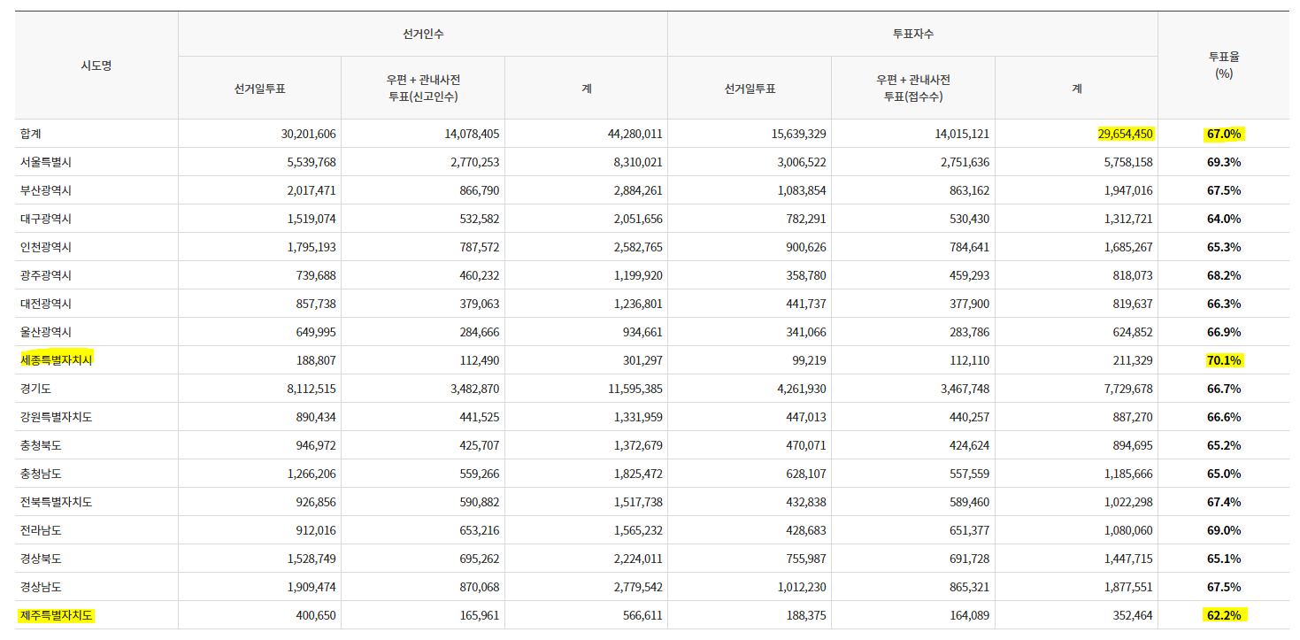 22대 국회의원 투표율 [67%]