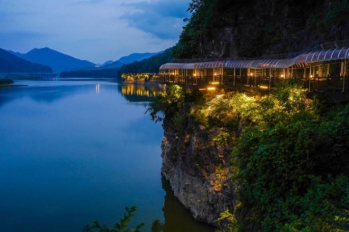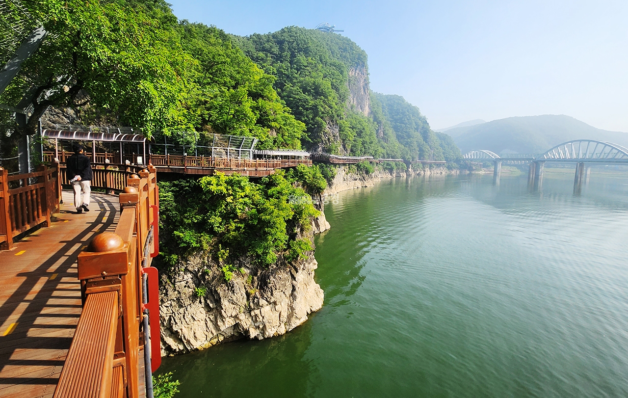 단양강 잔도 총 길이 1.12km의 단양강 잔도길에는 그동안 접근하기 어려웠던 남한강 암벽을 따라 잔도가 있어 트레킹의 낭만과 짜릿한 스릴을 온몸으로 체험 할 수 있다. 단양강 잔도는 남한강 풍