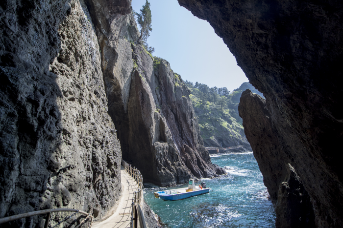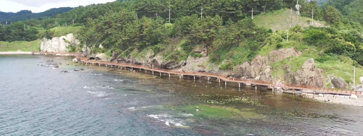 삼척의 해안선을 따라 절벽에 설치된 잔도와