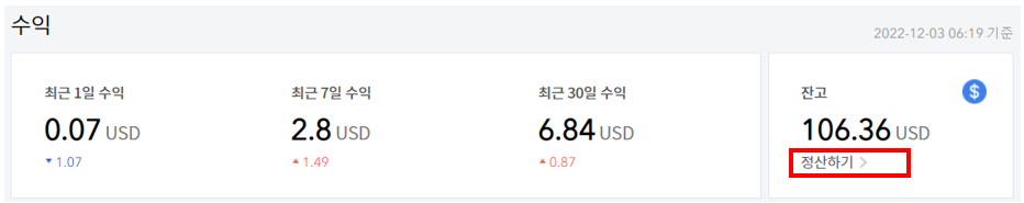 티스토리 홈페이지에서 로그인 한 후 관리자 페이지로 접속하면된다.( 관리자 페이지에서 에드센스 부분의 수익 부분을 보면 '정산하기' 버튼을 누르면 에드센스 결제 정보 입력 페이지로 연결된다. )