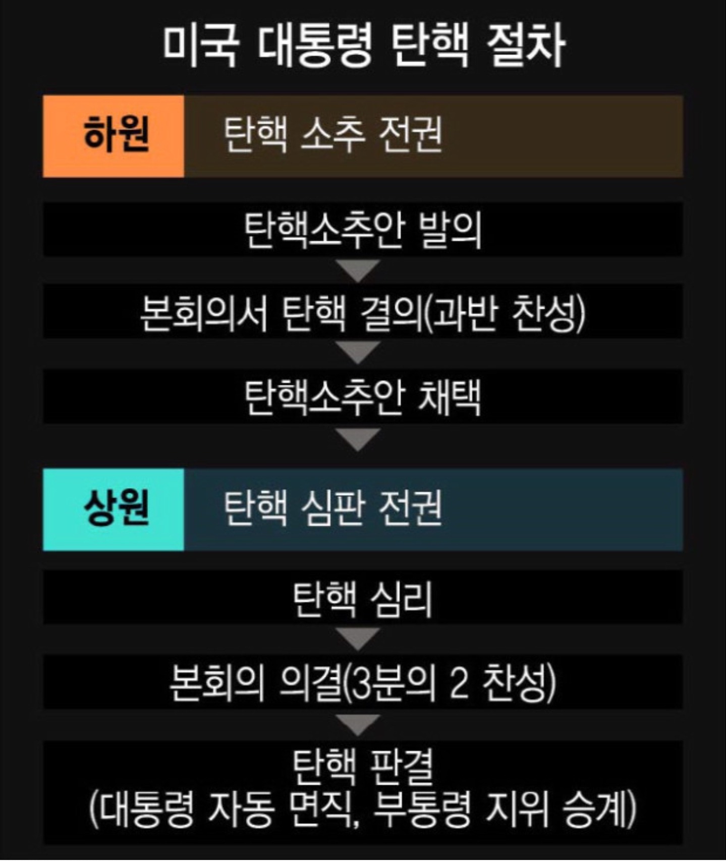 헌법과 헌법재판소법에 의한 탄핵제도는 국회의 탄핵소추절차와 헌법재판소의 탄핵심판절차로 나뉜다.