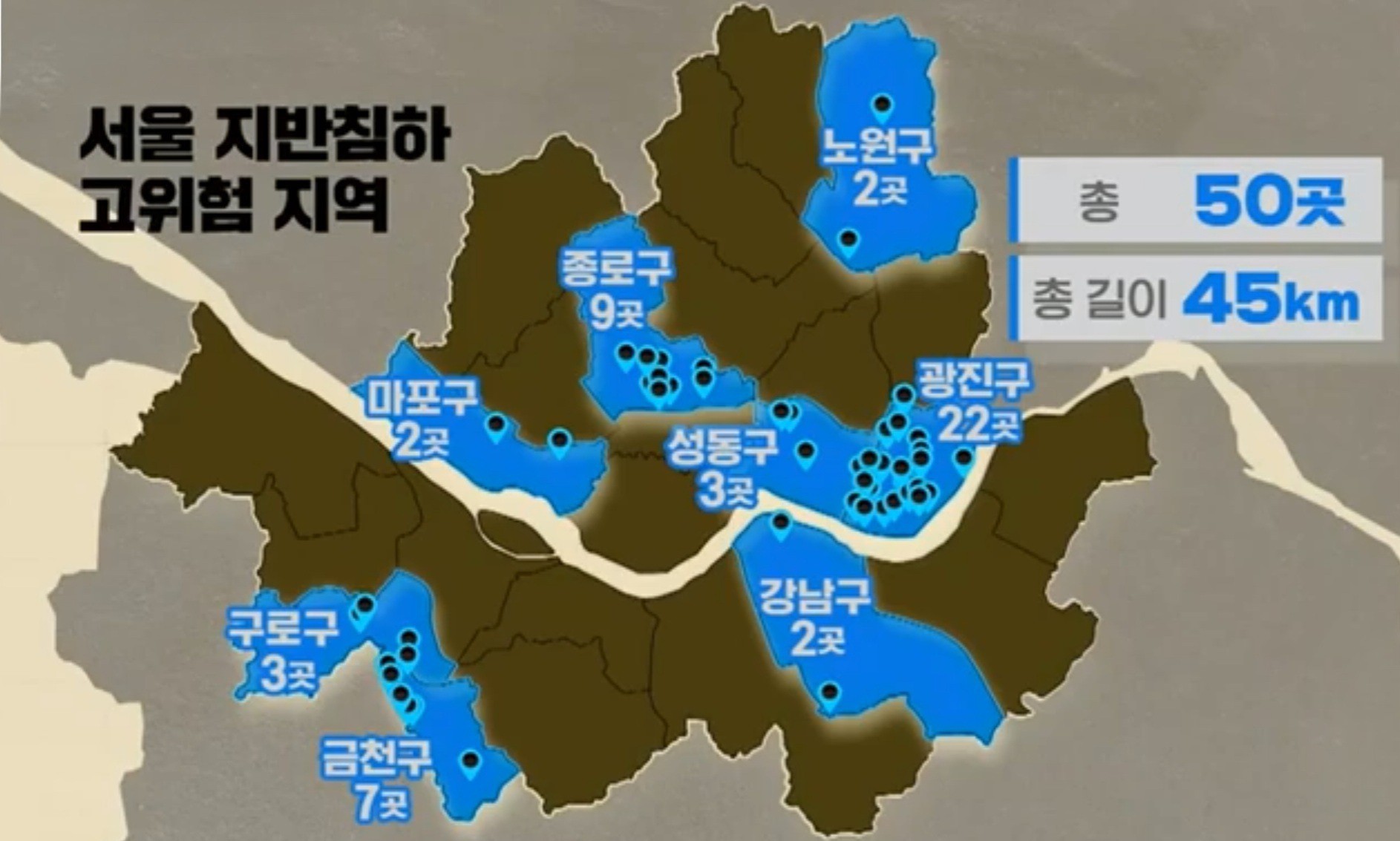 서울시가 지난해 각 자치구에 의뢰해 지반 침하 우려가 큰 고위험 지역 50곳을 정부에 보고한 것으로 확인됩습니다