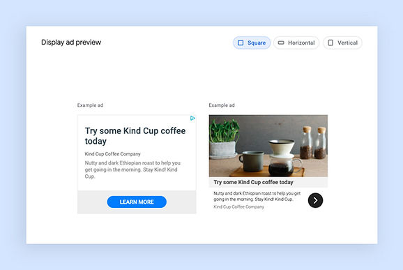 - 광고 스타일: 상단 이미지, 측면 이미지, 상단 제목 또는 텍스트만