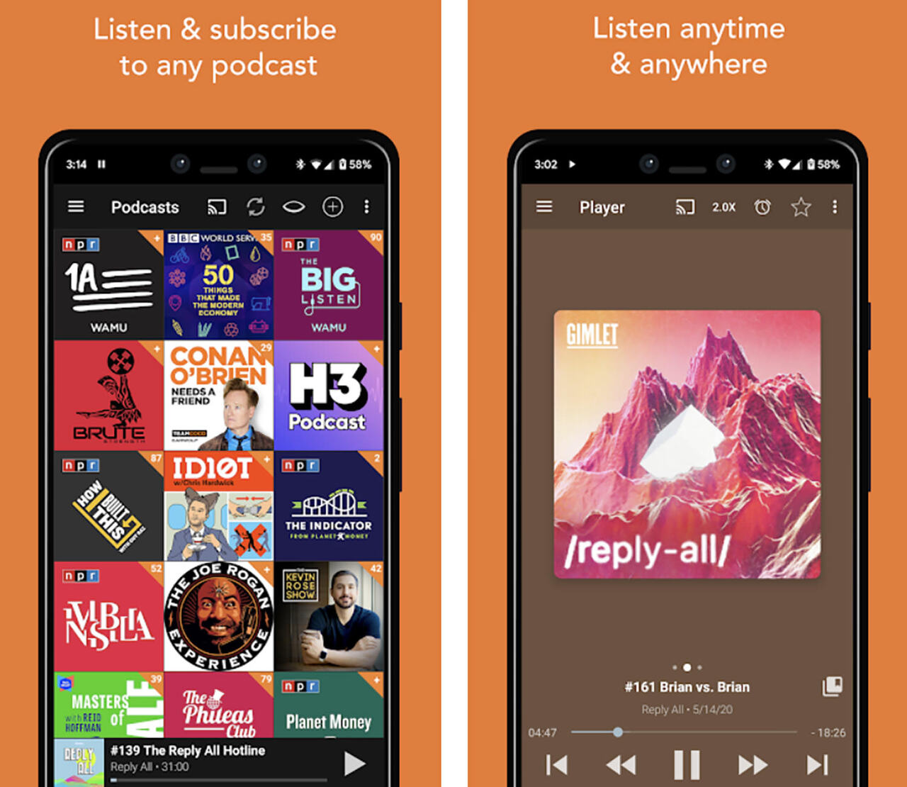하나의 앱으로 팟캐스트, 오디오 북, RSS 뉴스 피드 및 라디오를 관리하세요