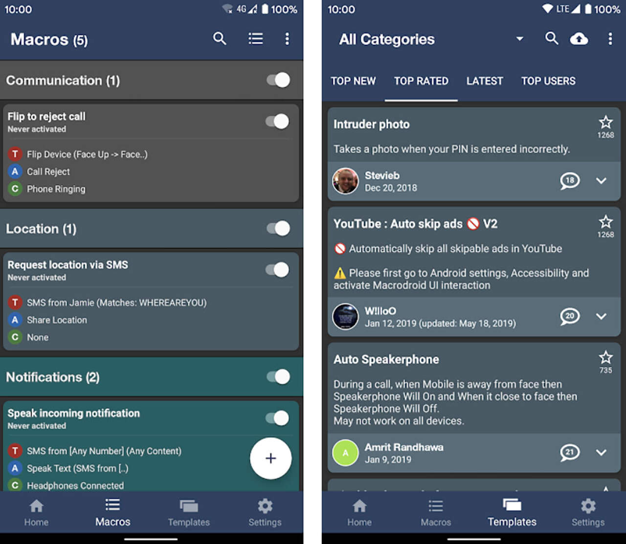 Android 기기의 일상적인 사용에 생산성을 추가하기 위해 MacroDroid는 여러 작업을 자동화하도록 에나멜을 입힙니다. 70개 이상의 트리거를 제공하여 특정 작업을 시작하고 마이크로를 잘 관리하는 데 도움이 되는 제약 조건을 구성합니다.