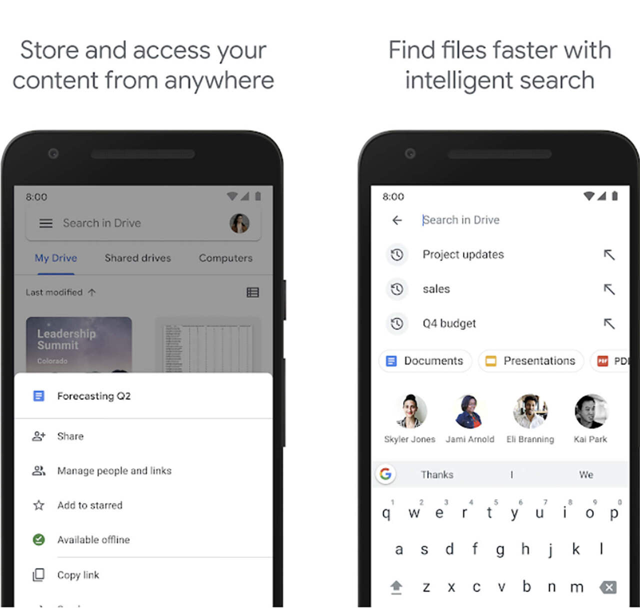 어디서나(오프라인 포함) 파일에 액세스하고, 권한을 설정하여 누구와도 데이터를 공유하고, 공유 파일의 모든 활동에 대한 알림을 받고, 장치의 카메라를 사용하여 문서를 스캔할 수도 있습니다.
