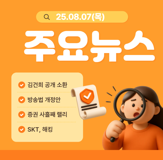 2025년 8월 7일 목요일 주요 뉴스