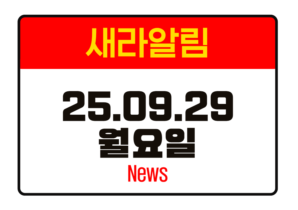 | 2025년 9월 30일 화요일 새라알림(News) (2) | 2025.09.30 |