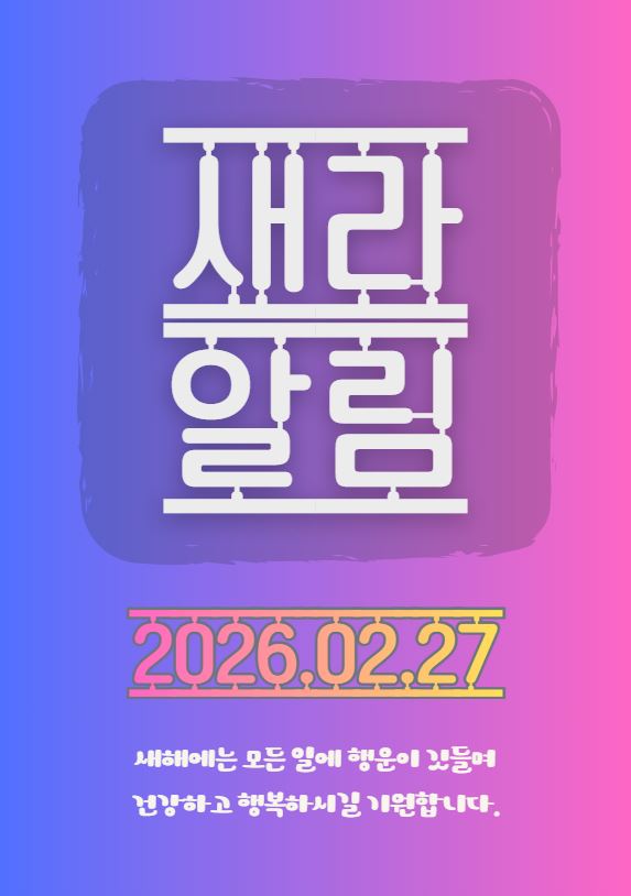 | 2026년 2월 26일 새라알림|News (0) | 2026.02.26 |